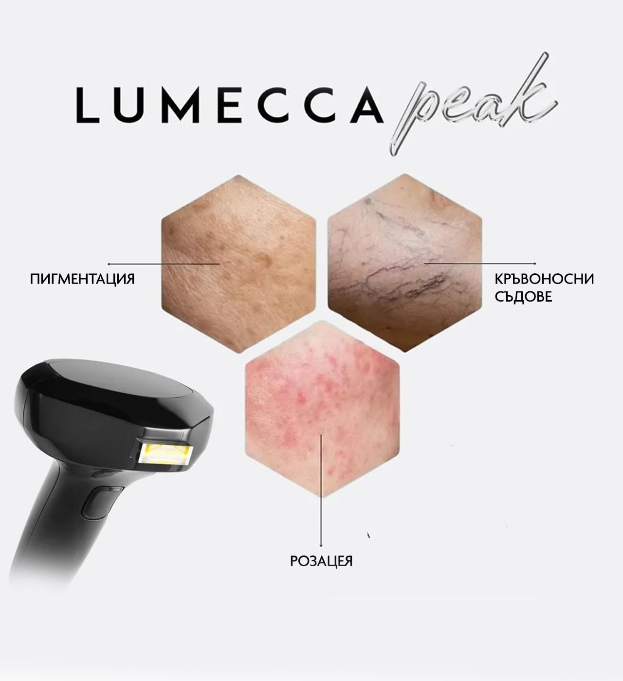 Lumecca Peak е иновативна IPL технология за фотоподмладяване на кожата, която помага за подобряване на тена и цялостния вид на лицето.